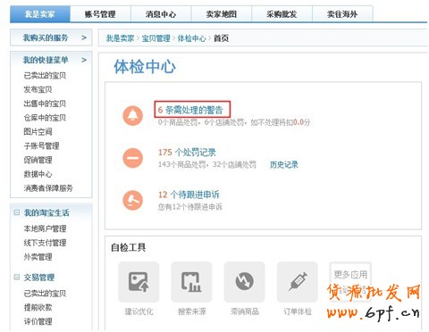 第二步:在頁面的最左側(cè)找到“寶貝管理”,點(diǎn)擊“體檢中心”;