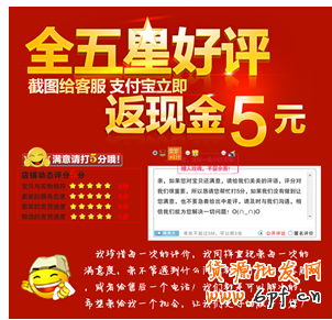 5、好評返現(xiàn)卡:參加淘搶購的寶貝,一般來說都是性價比高,價格比較實惠的寶貝,比較容易獲得買家的認可。如果有設置返現(xiàn)卡給予一定的獎勵,更能夠刺激買家進行好評評分,提升店鋪的綜合評分。目前淘寶官方對于好評返現(xiàn)是開始干預了的,手機類商品已經(jīng)是禁止賣家通過好評返現(xiàn)行為來進行邀評了。因此設置方面后續(xù)需要根據(jù)具體情況而定。