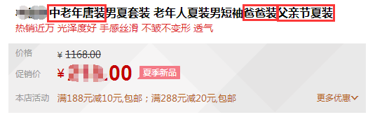 6月,雖然是淡季,但是當中卻有極好的引量契機,便是端午節(jié)和父親節(jié)湊到一起,這對于賣中老年服裝的店鋪來說,只要利用好雙節(jié)的引流和促銷,淡季也變旺。由于雙節(jié)假期和周末的影響,無線流量碎片化,因此在雙節(jié)期間無線端下足功夫,說不定會得到更好的效果。