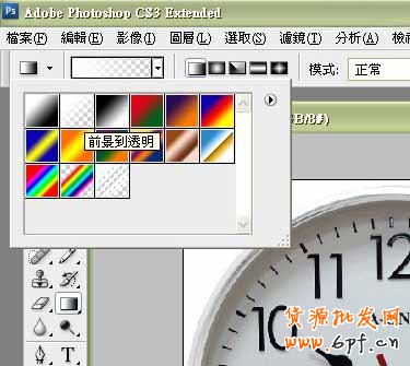 7.選擇的漸層需要是前景到透明的,因?yàn)閳D片前景是白色的,所以就是白色到透明了。