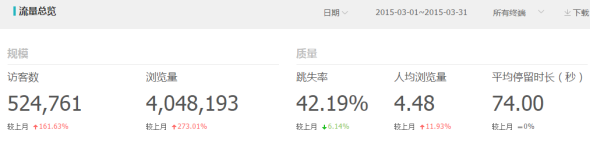 3月份的流量提升明顯,停留時間延長。