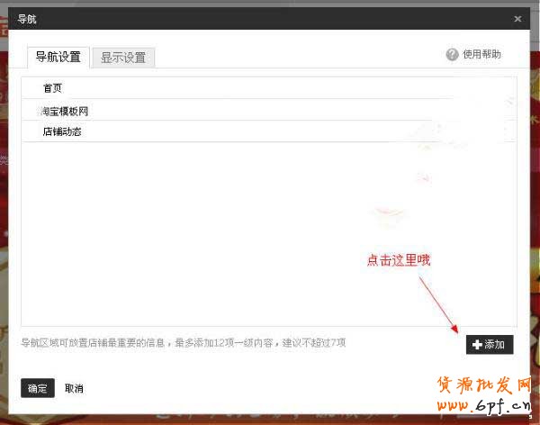 8.在導(dǎo)航設(shè)置中點(diǎn)擊“添加”。(如下圖)