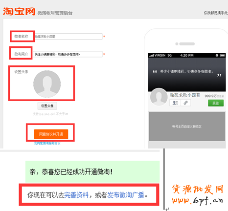 微淘在手機淘寶底部導航的第二位,有大量流量,另外阿里旺信也在力挺微淘。微淘是移動端新的流量入口。微淘開通方式包括: