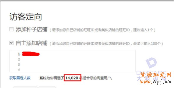 在定向方面,可以根據(jù)店鋪訪客情況或投放目的來(lái)設(shè)置,如拉新或是召回老客戶。拉新主要以定向競(jìng)爭(zhēng)對(duì)手店鋪或興趣點(diǎn)為主,而召老比較常見(jiàn)的就是定向自己店鋪。根據(jù)這個(gè)店鋪老客戶回訪占比低的情況,筆者這次投放目的主要是召老,則定向自己店鋪: