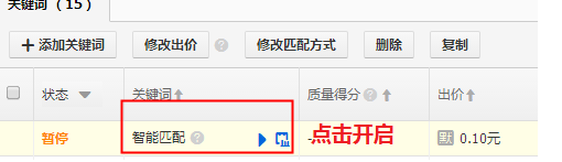 智能匹配:智能匹配是指根據(jù)推廣寶貝的特點,系統(tǒng)將智能選擇您未添加且適合該寶貝的關鍵詞。如果開啟了這個功能,我們需要定期觀察后臺的關鍵詞情況,不好的詞要盡快的刪除。
