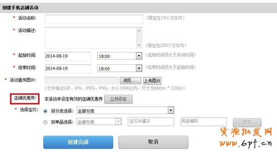 ·此處添加的活動宣傳圖片,不會作為在無線店鋪首頁透出的活動banner,只會在活動承接頁透出