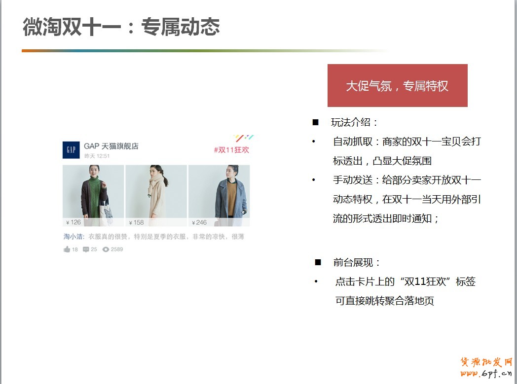 以上四處是商家可以自行運(yùn)營為店鋪引流的部分,那么對(duì)于即將到來的雙十一,微淘的一些玩法也可以在這里提前劇透一下: