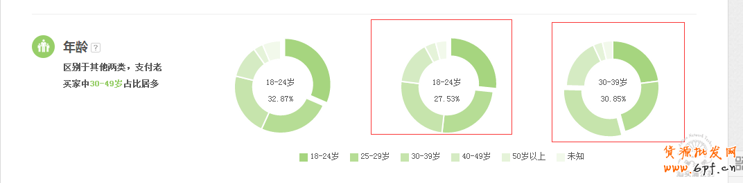 從店鋪訪客人群可以看出店鋪主要消費人群集中于女,30-39歲,占比30.05%,而18-24歲的年齡段僅占27.53%。