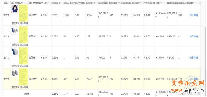 以下為直通車后臺的自定義人群投放效果數(shù)據(jù):