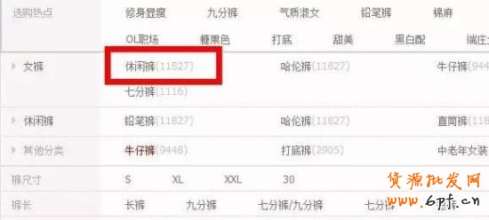 以“休閑褲女”這個(gè)關(guān)鍵詞舉例。