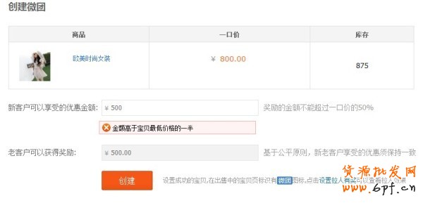 參團(tuán)人享受的折扣是通過發(fā)放微團(tuán)專用的寶貝優(yōu)惠券的方式實(shí)現(xiàn)的,設(shè)置金額不能高于商品最低價(jià)格的一半。發(fā)起人返利金額與參團(tuán)人優(yōu)惠券金額一致,不需要填寫。點(diǎn)擊創(chuàng)建后,即可發(fā)布成功。