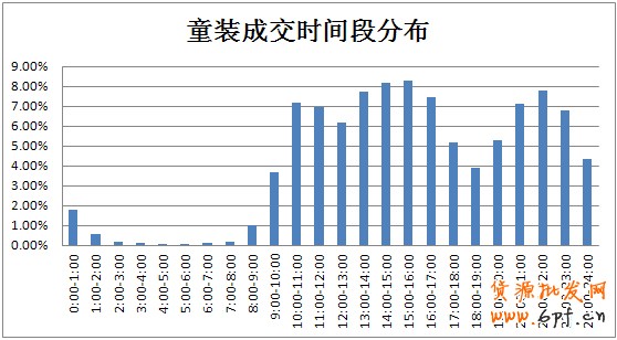 在購(gòu)買時(shí)段上,服飾行業(yè)通常的成交高峰集中在晚上,而童裝的成交卻在下午略高,峰值通常也產(chǎn)生在下午,賣家在營(yíng)銷和廣告投放時(shí),需要注意迎合這一群體的消費(fèi)習(xí)慣。
