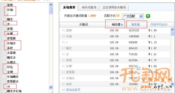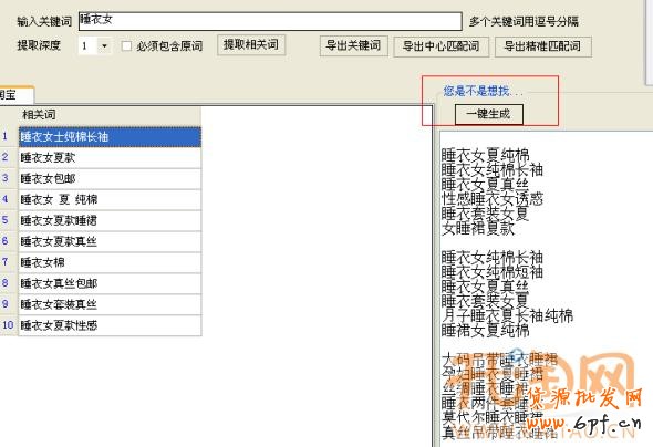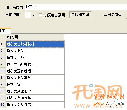 打開該工具,輸入一個(gè)中心詞,比如“睡衣”“睡衣女”,點(diǎn)擊提取相關(guān)詞,等下面關(guān)鍵詞出現(xiàn)完畢后,點(diǎn)擊導(dǎo)出關(guān)鍵詞,就可以保存搜到的詞,這部分就是淘寶首頁搜索框下的熱門詞,我們可以在里面挑選適合推廣寶貝的關(guān)鍵詞去添加。