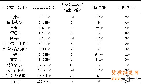 以50為基數(shù),根據(jù)前12個二級類目的平均比例統(tǒng)計(jì),得出各類目的實(shí)際選定寶貝數(shù),其中,各二級類目的具體寶貝由對應(yīng)的二級類目的“什么寶貝好賣”子目錄來確定,碰到考證考試類和博庫上沒有的書籍跳過,最后不足的由一級類目“什么寶貝好賣”子目錄確定補(bǔ)齊50個,如表3所示