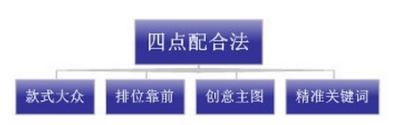 什么叫“四點(diǎn)配合法”?我們把影響直通車(chē)的點(diǎn)擊率因素進(jìn)行歸類(lèi),根據(jù)重要性、難易操作性進(jìn)行最優(yōu)化操作處理,提取的這四個(gè)因素分別是:款式丶排位丶創(chuàng)意丶關(guān)鍵詞 (如圖)