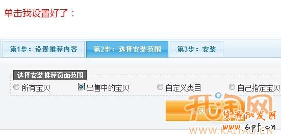 這一步是讓你選擇你這件推薦的寶貝希望出現在那里,我選擇的是所有出售中的寶貝,我選好了: