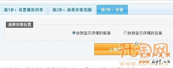這步你可以決定把它放在前面還是后面,選好之后點擊立即安裝,安裝需要1-5分鐘。安裝好之后你就可以立即去網店查看效果了,很棒的哦!