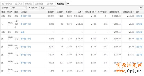 當我們把直通車開到一段時間后,就會發(fā)現(xiàn)直通車的后臺有個直通車報表,利用這個報表我們可以對投入產(chǎn)出比和成交金額較高的人群,不管是男還是女,低購買力還是高購買力,一鉆還是四心的買家進行適當加價。