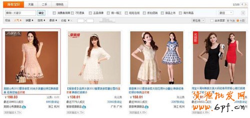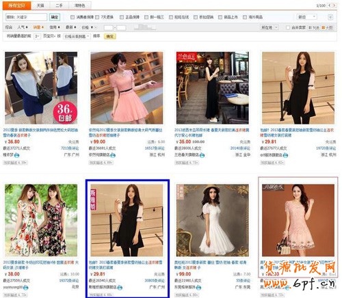 我們先觀察一些豆腐塊的寶貝,看看有什么共同點(diǎn)——搜索“連衣裙”,默認(rèn)顯示如下圖所示:
