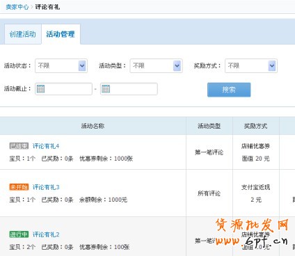 備注:創(chuàng)建多個(gè)評(píng)論有禮活動(dòng),對(duì)應(yīng)多個(gè)活動(dòng)資金,在支付寶那邊只會(huì)記錄一個(gè)總金額,這點(diǎn)需要請(qǐng)各位賣家注意。