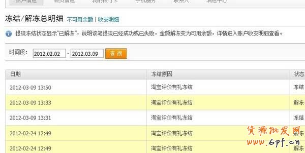 4、每一個(gè)評(píng)論有禮活動(dòng)發(fā)獎(jiǎng)對(duì)應(yīng)的資金情況可以在賬戶凍結(jié)/解凍明細(xì)中查看: