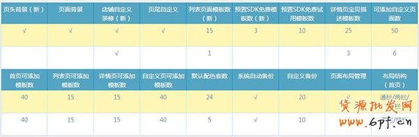 旺鋪專業(yè)版比基礎(chǔ)版新增了5種功能,分別是:頁頭背景、頁面背景、頁尾自定義、3個預(yù)置SDK免費模板數(shù)、以及10個預(yù)置SDK免費試用模板數(shù)