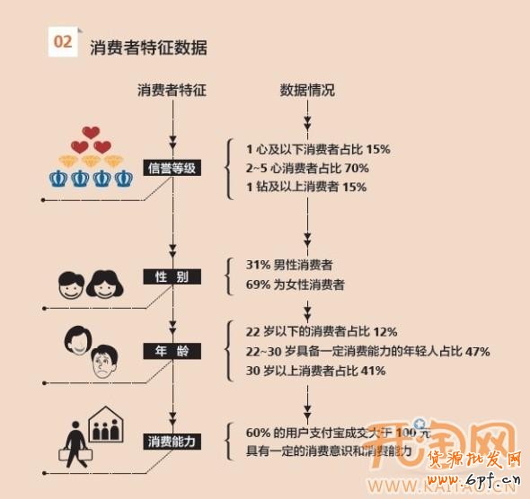 一黃鉆及以上消費(fèi)者占比為15%,2~5心的消費(fèi)者占比為70%,余下為1心及1心以下消費(fèi)者。2~5心、1鉆及以上消費(fèi)者總共占據(jù)了天天特價(jià)85%的消費(fèi)者,說明絕大多數(shù)平臺(tái)消費(fèi)者都擁有網(wǎng)絡(luò)購物的經(jīng)驗(yàn),不需要賣家去做網(wǎng)絡(luò)購物的普及工作,這對(duì)大部分小賣家團(tuán)隊(duì)規(guī)模小甚至是自己一個(gè)人包攬網(wǎng)店所有工作的店鋪人員配置而言,是一件好事兒。