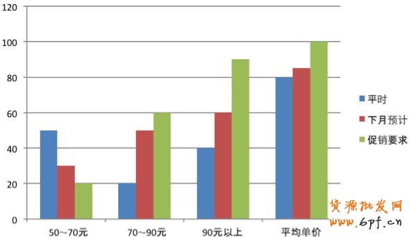 假設(shè)是一個做服裝的店,目前客單價各數(shù)字段的銷量分布是第一組數(shù)據(jù),我們可以算出平均單價是80元。現(xiàn)在秋末冬初,根據(jù)以往的經(jīng)驗和自然的銷量增長,我們可以得到第二組數(shù)字,同樣算出來客單價漲到了85元。那么促銷的“滿xx元”應(yīng)該怎么定呢?