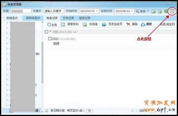 步驟一、進入消息管理器:打開您與對方的對話框——然后點擊“查看消息記錄”,再點擊右下角的“消息記錄”按鈕或按F8。