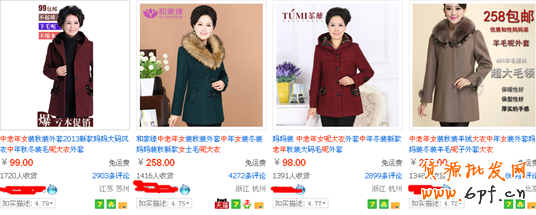 舉個(gè)例子,輸入中老年呢大衣,看下出來的主圖