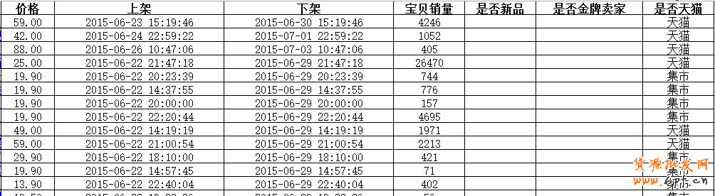 查找你想了解的寶貝關(guān)鍵詞,拉出相關(guān)數(shù)據(jù)(我用的馭寶魔盒拉的數(shù)據(jù),也可以用其他軟件采集):   這里已經(jīng)有了我們所需要的上下架時(shí)間,這時(shí)候你要做好記錄,什么關(guān)鍵詞,詞的寶貝數(shù)是多少,什么時(shí)間點(diǎn)拉下來的。   我會這樣做一個(gè)記錄。這個(gè)記錄方便以后查看,包括可能后續(xù)的需要更加大數(shù)據(jù)或者其他方面的研究。