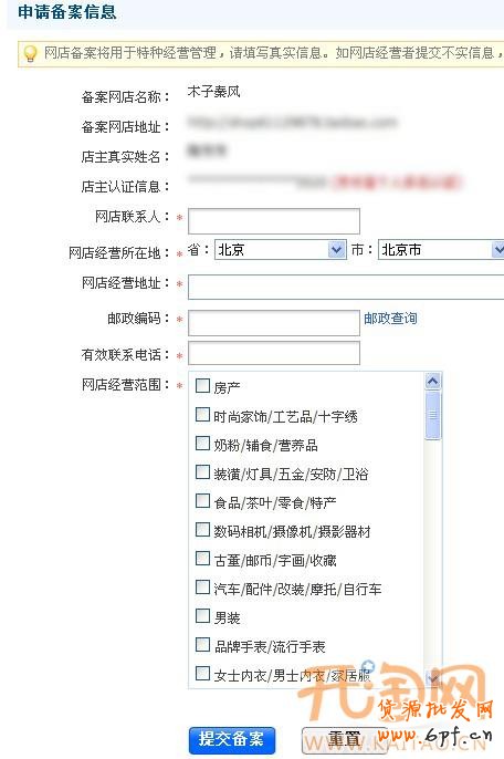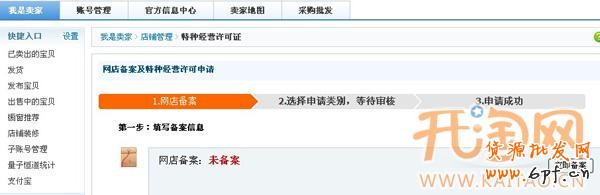 然后點擊“備案”,按照提示一步步填寫店鋪信息即可。