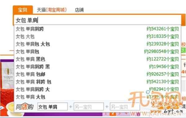 這里有兩個(gè)途徑,一個(gè)途徑還是從淘寶搜索欄中得到。比如你的類目是女包,那你就輸入女包。
