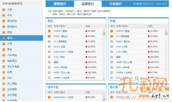 淘寶指數(shù)中可以看到各個(gè)類目增長最快的關(guān)鍵詞,選擇一個(gè)你主營的類目,進(jìn)行查看,老挺是做女包的,就以女包為例子,點(diǎn)擊箱包類目。