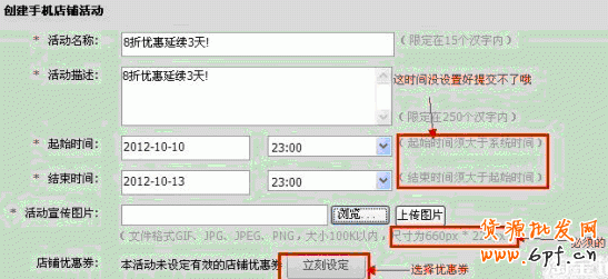 需要注意的是,上傳的活動(dòng)宣傳圖片尺寸是有限制的,必須為660PX*220PX,而且大小要在100K以內(nèi)。