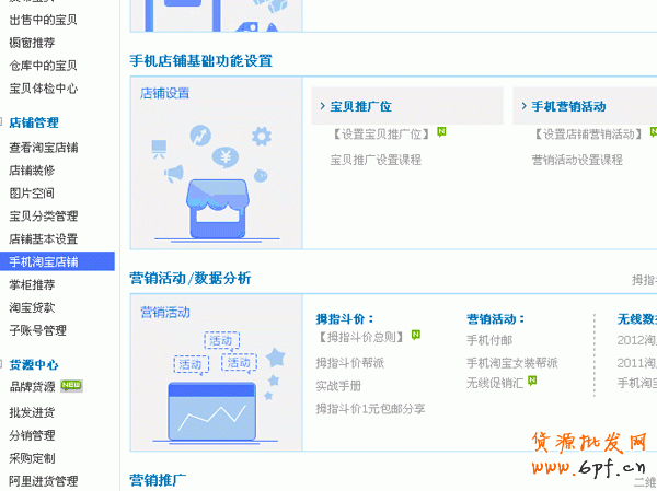 進(jìn)入后,看到了手機(jī)店鋪的所有內(nèi)容,中間的一欄是手機(jī)店鋪基礎(chǔ)功能設(shè)置。,在賣家中心,選擇店鋪管理—手機(jī)淘寶店鋪—手機(jī)旺鋪下面,選擇馬上去設(shè)置。
