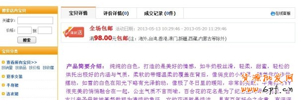 例:設(shè)置全店滿XXX元包郵,比如滿100元就包郵,設(shè)置后活動模板安裝到參加活動的寶貝詳情上面,起到廣告的作用。