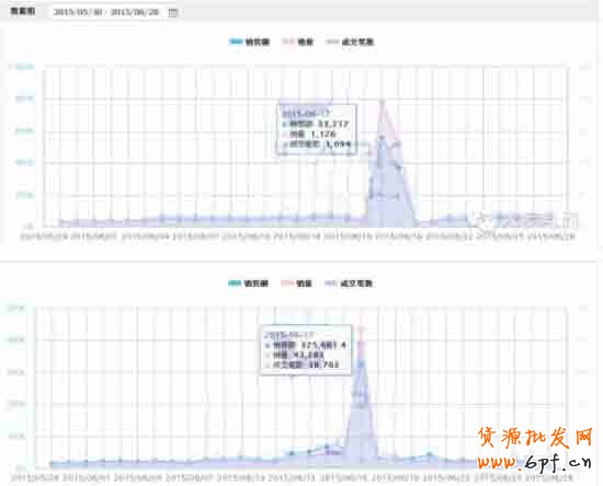 看上圖,為同一類目下的兩款產(chǎn)品,這個(gè)是淘搶購活動(dòng)當(dāng)天的成交情況,為了保證對(duì)比的可參考性,選擇了時(shí)間段差不多的統(tǒng)一下細(xì)分類目下的兩款寶貝,成交卻呈現(xiàn)出較大的差距。那么我們應(yīng)該選擇什么樣的產(chǎn)品報(bào)名活動(dòng)呢?