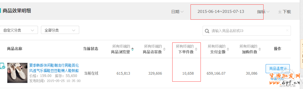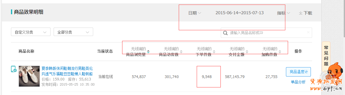 該寶貝為豆豆鞋男款,剛推廣時(shí)銷(xiāo)量基礎(chǔ)為63單,推廣時(shí)間從6月14推廣到現(xiàn)在7月14,利用直通車(chē)無(wú)線端引流,帶動(dòng)店鋪寶貝的自然搜索和成交,隨著無(wú)線端流量的增大,現(xiàn)總成交為6000件,時(shí)間為一個(gè)月。數(shù)據(jù)如下: