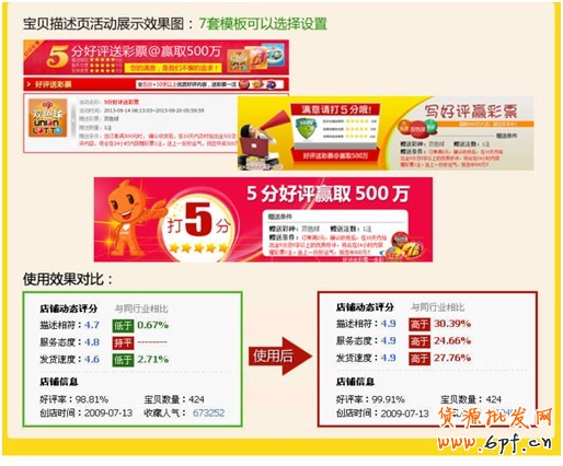 如何快速提升店鋪動態(tài)評分和優(yōu)質(zhì)評語?促銷優(yōu)惠手段的設(shè)置很重要,好評送彩票不但能讓你開拓新客戶,也能維持老客戶!