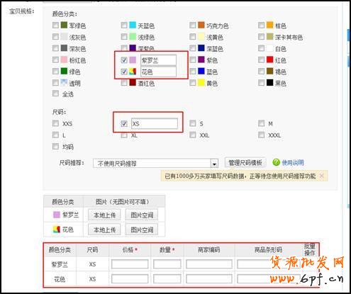 商品多個價格的設(shè)置,是需要有顏色、尺碼等套餐信息的支持,如果您的商品有顏色屬性,即可以勾選對應(yīng)的顏色或尺碼屬性,方可設(shè)置不同的價格,如圖: