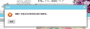 裝修了店鋪首頁后,點擊發(fā)布,出現(xiàn)“抱歉!頁面寶貝詳情頁的名稱不能修改” 給淘寶客服留言N次,問題沒有得到解決。給客服打了兩次電話,一樣無法解決。已經過去一個月了,真的是急死人了。誰能告訴我怎么辦??!