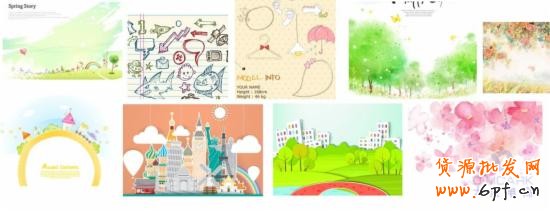 除了顏色,在卡通場(chǎng)景中運(yùn)用的素材同樣需要漫畫(huà)卡通化的,這些素材可以不單單局限于我們熟知卡通形式,也可以是水彩畫(huà)形式,粉筆畫(huà),剪紙等等都是可以的。所以,我們?cè)谡铱ㄍㄋ夭幕騾⒖紩r(shí)的關(guān)鍵詞可以是:卡通,水彩畫(huà),粉筆,剪紙等等一些卡通周邊相關(guān)的詞匯。下面,就是通過(guò)這些關(guān)鍵詞找到的素材:
