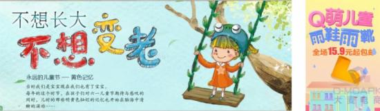 上面兩張圖片分別運(yùn)用了兩種不同的方式,去修飾我們的字體,使得我們的字體更能凸顯主圖,更形象的傳達(dá)出我們鉆石展位的主圖。如“例1”通過(guò)將字體改變成蠟筆字的形式,讓字體更加的突出,更讓“兒童節(jié) 不想長(zhǎng)大”這個(gè)主題更加的突出,吸引。同理,我們也可以按照我們鉆石展位的主題對(duì)我們的文字進(jìn)行加工:如畢業(yè)季時(shí)我們可以用粉筆字形式,女人節(jié)可以用水彩畫(huà)形式等等。