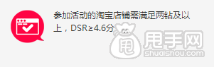報(bào)名參加淘特萊斯的淘寶賣家們應(yīng)該知道,報(bào)名淘特萊斯的要求中有一項(xiàng)是對(duì)店鋪DSR的要求: