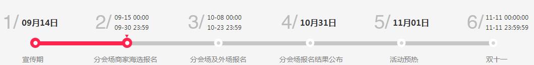 1、分會場商家海選報名時間:9月15日-9月30日 (只有海選通過的賣家,才可以報名雙十一和雙十二會場);