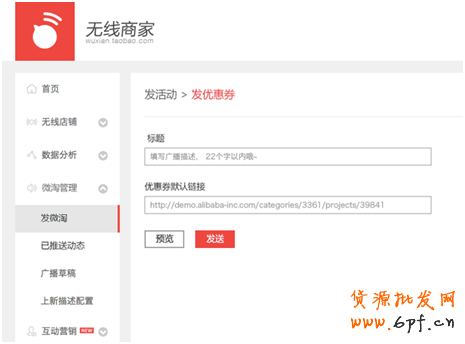 •原本的優(yōu)惠券推送到微淘需要商家完成復(fù)雜的轉(zhuǎn)推鏈路,且前臺UI不統(tǒng)一操作成本高。微淘為商家提供標(biāo)簽為“優(yōu)惠券”工具,直接在無線運營中心后臺發(fā)券,作為店鋪外發(fā)券的主要通道。