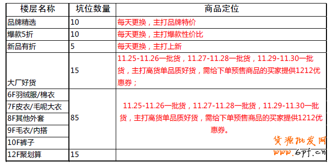 貨品:30%TOP商家商品(招商,非1212場(chǎng)內(nèi)、場(chǎng)外商品)+70%腰部商家商品(不招商);