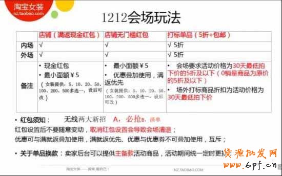 再來(lái)看看今年雙十二的會(huì)場(chǎng),對(duì)外推廣會(huì)有一些特色會(huì)場(chǎng),狂歡層會(huì)有橫向的做雙12的個(gè)性化嘗試,比如無(wú)限搖一搖之類,消費(fèi)者的現(xiàn)金紅包可以全場(chǎng)使用,店鋪雙11是7折,雙12是5折,店鋪滿返紅包不要隨便改動(dòng)。