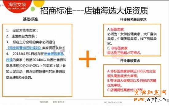 9.15店鋪賣家招商正式開(kāi)始,基礎(chǔ)標(biāo)準(zhǔn)滿足了才能到下一步,女裝類目主要分標(biāo)簽賣家和非標(biāo)簽賣家,三鉆以上方可申請(qǐng)。非標(biāo)簽賣家參照近180天成交金額由高到低優(yōu)先審核,此外,有詳細(xì)大促規(guī)劃以及目標(biāo),且調(diào)性較高可享受優(yōu)先審核。所以大家要做好大促相關(guān)的的規(guī)劃,這樣就更容易通過(guò)